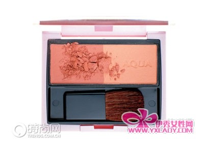 AQUA 立体腮红(#BE,110元)浓淡不一的双重色彩为脸颊增添红润色彩,修饰轮廓的同时,演绎自然动感表情。