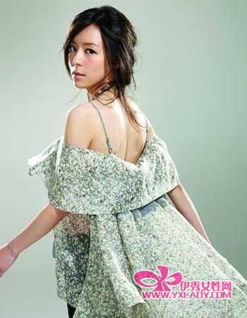 这是款很小女人的发型,只要将头发松散的扎起再反转固定于脑后就可以了。