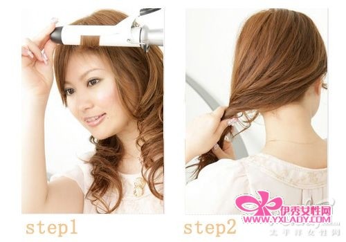 Step1:将八分的刘海用大号卷发棒向外烫卷。