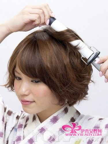 首先将头发发尾卷蓬松。