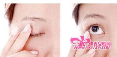 ★step2.再使用指腹沾取带有珠光的粉肤色眼影膏,涂抹在卧蚕处。