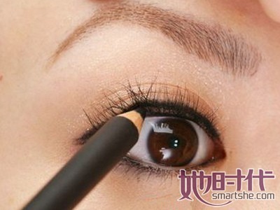 刷上睫毛膏,并且用白色眼影打亮眼头,打亮眼头眼睛会更有光泽,不过要注意适量,不要打上过多的高光。