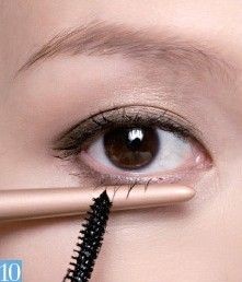 将睫毛分3段彻底夹翘,上睫毛确实从根部往上刷,下睫毛利用笔杆尾端辅助,就能轻松上色且不沾染眼皮。