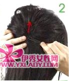 抓住发束扭转后,往头顶推高,增加圆弧度后用发夹固定