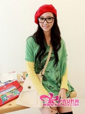 小编点评:自然的微卷长发,刘海不要遮盖额头哦,这样更能修饰出好脸型。配搭大大的粗框眼镜,显得脸蛋很精致很可爱,很有装嫩的效果哦,马上年轻了几岁,仿佛回到学生年代。秋冬季节带上红帽子也是不错选择,显得更俏皮粉嫩。