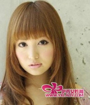 推荐理由:齐刘海风貌似在这个季节又卷土重来了,不管长发短发,直发卷发,MM们都喜欢搭上一个稚嫩的齐刘海,不仅掩龄,还能瘦脸。这款发型聪明地利用了分层的发段,先利用齐刘海遮住了额头,脸看上去就小了一半,分层的发段将人的视觉拉到头发上,脸自然就变小了。