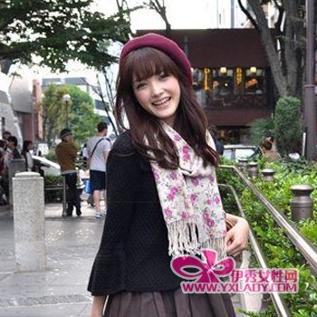 戴上画家帽的柔顺卷发,称得MM十分乖巧。深红棕色的头发,则有一种低调的甜美,还显得MM皮肤气色特别的好!