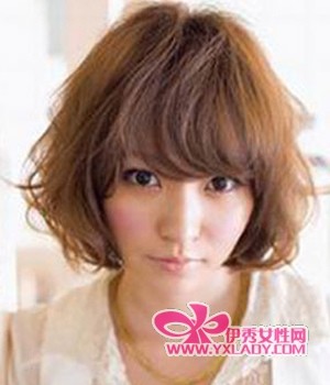 小刘海大Magic:如果MM已经厌倦了整齐的平刘海,不妨试一下这款微卷的弧度刘海。利用刘海的线条和两颊蓬松的卷发创造出完美脸型+直挺鼻子的美感,显得青春可爱。亚麻的发色显得皮肤异常白皙,从而在视觉上忽略了五官的立体与否,奇妙之处就在于利用整体而达到局部的挺鼻子效果。