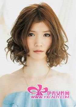瘦脸秘诀:中分刘海可以很好地修饰脸型的角度,改变脸型的比例,让肉肉的脸型通过两边长刘海的分布而遮盖过宽的颧骨,脸蛋看上去就会更修长,五官也会显得更加精致,从而提升你的自信感。秀发的蛋卷卷度既增加了厚重感又呈现可爱的感觉,是小女生大爱的一款短发。