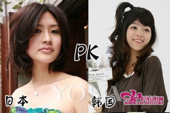 第七组:这组发型的感觉稍有不同,日系的比较干练,而韩系的则走非主流可爱风格。日系的造型很简约不过没有新意,韩系今年非常流行卷发搭配团子的造型,出街很抢眼!