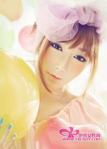 粉色纱质蝴蝶结,很好的衬托女孩清纯的气质。