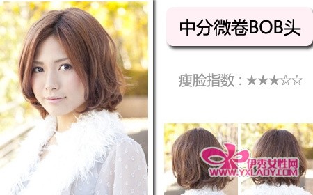 发型诠释:用一点点的蓬蓬粉或者造型摩丝把内部头发轻轻打散,制造足够的空气感,中分刘海制造出A型的额头形状,脸型有拉长效果,发尾向内的弧度包住脸型,让脸看上去更瘦长,特别适合脸胖胖的女生。不需要发饰,自然不造作的提升美人气质。