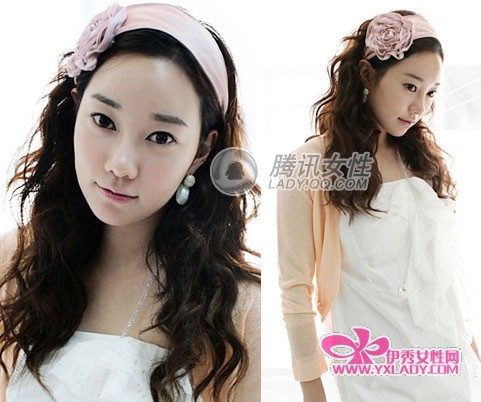 造型升级:名媛气质的花朵装饰宽发带,选择与针织衫同色系的颜色,让你看上去更加素雅文静。
