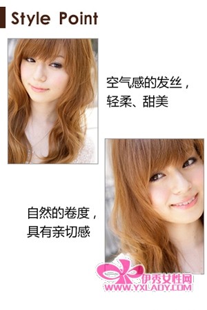 打造重点:自然得彷如天生的自然卷度和轻盈丝质的发丝,优雅的公主feel当中带点邻家女孩的亲切感。