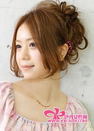 盘发太过精致容易显得老气,有宴会华丽气息又不失蓬松自然的花样卷发更受30s OL们的青睐。不要把所有头发都卷进去,刘海和脸部两侧留一些头发自然的放下,显的更妩媚。