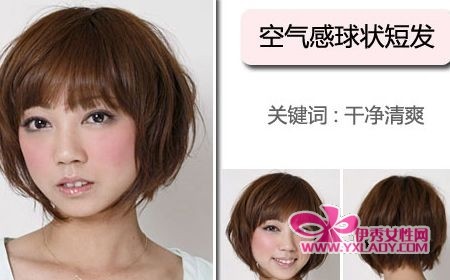 必换理由:以球形的轮廓作为发型的重点,空气感的电烫还兼顾了头型前额凸、头脑翘的完美头型的标准。头发的层次给发型添加了新的活力,不同层次的头发光泽和细碎的齐刘海,让发型更加时尚。同时还达到小脸的效果,让五官更加突出。将发尾在脖子处收起,让发型向脖子延伸,使脸型看上去更加修长,适合圆脸、鹅蛋脸、倒三角脸的MM尝试。