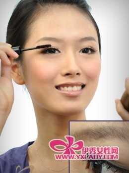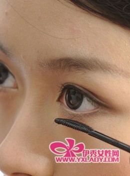 NO.1:扫出电人长睫毛。在扫睫毛膏之前,先用睫毛夹三段式夹翘睫毛;用睫毛膏的白色纤维加浓加长,再用黑色睫毛液涂抹。在涂抹睫毛膏时以Z形手势由睫毛根部往上涂抹,以同样方式涂抹1-2次,至于眼头、眼尾部分即可以用睫毛刷的前端轻轻涂抹。记得涂抹的时候要把睫毛刷紧贴睫毛根部,这样才会更加立体持久。