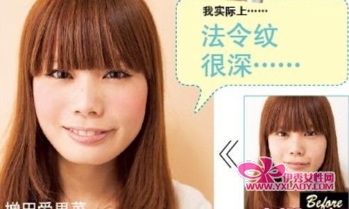 如果将法令纹全部用粉遮盖住的话,反而显得不自然。其实只要遮盖住鼻翼处的法令纹,法令纹整体给人的感觉就会淡化不少。