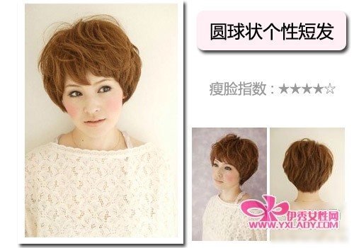 发型诠释:圆形弧度的短发发型,超短且随便摆放的刘海露出眉毛,使眉骨和鼻梁的轮廓更突出,脸部显得立体、精致。脸庞其余较短的发丝可以很好的修饰脸型,有种慵懒的性感,增添小女人味。
