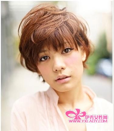 短发凌乱小卷――蓬松、蓬松、要的还是蓬松,富有层次感的蓬松让本来简单的短发瞬间与众不同起来。即使是发量少的MM也不用担心。过眉的刘海又让原本中性化的凌乱小卷透出丝丝柔美气息。