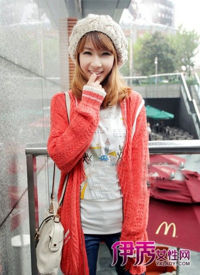 此款韩式卷发的搭配很合适寒冷的冬季,不管是头顶帽子,还是发型的设计,都能发挥保暖的作用,秋冬更温暖舒适,而且内卷发丝贴在脸颊,还能起小脸作用,齐刘海适度剪薄,形象青春活泼。
