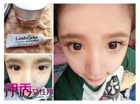 2.先贴好一只的上假睫毛效果图,对比一下是不是很大区别呢!