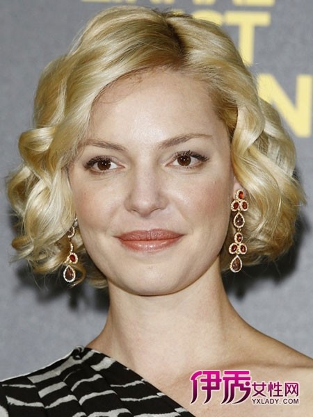 到下巴的长度,长刘海的bob头可以给长脸型增加一些宽度,尽可能的增加两侧耳朵旁边的发量,能修正脸部轮廓哦。试试女星Katherine Heigl的这一款,她也有两种不同的诠释方式哦,如果你发量较多那就选择直发,只在发梢位置向内卷曲即可;如果你发量较少,就烫成柔美的波浪吧。