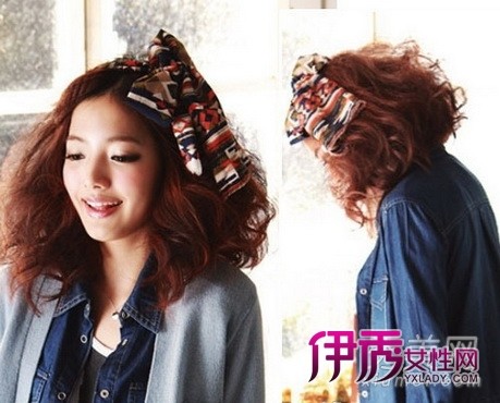 2012潮女发型一箩筐 很抢眼的烫发,蓬松的空气动感,采用发带扎出漂亮的蝴蝶结点缀,更加显出那不羁的韵味。