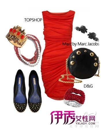 一般捏褶手法会运用在单色面料中,没有花哨的纹样,简单中需求变化。此时选择单品,尽量在单色中挑选。红色的连身裙,配搭少许鉾锭金色,在玄色映衬下,彼此呼应,隐约中则是气质的流露。