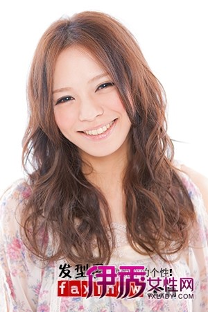 超过肩膀的长卷发,中分发型设计,露出额头制造清爽效果,还可借用脸型的微卷线条柔和脸部,创造清新空气感的小女人味,浅红发色挑染,造型健康元气,魅力大增。