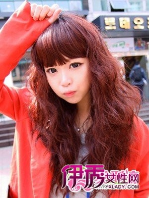 长度及胸的凌乱感烫发发型,头顶头发做出圆形层次,增加发量的蓬松感。发梢修剪出动感层次,做出烟花烫造型。通过烫发的轻盈度增加空气动感,流线形的发丝成为重点,长发烫发蓬松程度是打造随意发型的关键所在。