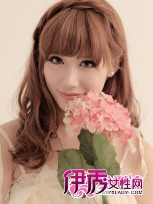 发质柔软的烫发是打造自然发型的重点,只有蓬松的秀发才能显现出柔美感觉。在梨花头的基础上,发尾做出些微的小弧度曲线,制造出小女人的浪漫风情,取头部发丝编织出发辫造型缠绕在头顶,搭配白色梦幻吊带裙,瞬间秒杀男生。