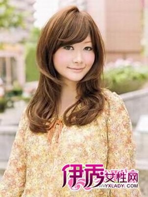 具有改变发量少以及能够完美的修饰脸型的一款时尚发型!将头顶部分只走出蓬松的feel,采用厚重的斜刘海来缩短脸型比例,打造鹅蛋脸的效果!层次分明的脸颊以及发梢出打造出S型的卷曲效果,恰到好处的长度选用了有厚重感的栗色染发,提升了整体的搭配魅力指数!
