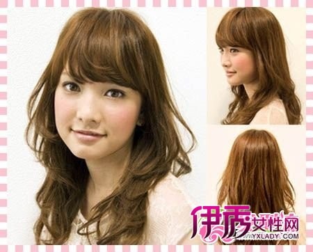 这款发型烫出曾侧感较强的感觉,不规则不匀称的修剪方式让这款烫发发型看上去不显老气而出乎意料的展示出女生可爱迷人的一面。女生同样采用了厚重的齐刘海打造巴掌脸的效果,粉嫩的妆容搭配可爱气质卷发,时尚发型妆容LOOK就非你莫属啦,姑娘们还等什么?