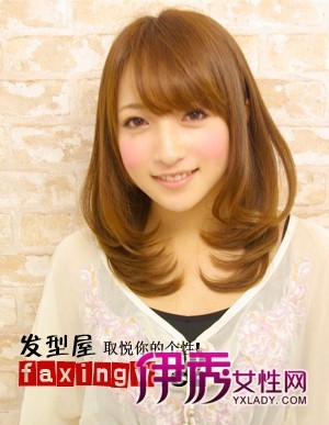 中长短发,修饰脸型的关键点是微卷的发丝弧度,轻轻卷的弧度线条,围绕脸颊周围,质感的厚实发丝,大大脸颊视觉上减小,再配搭长刘海,脸颊立即减小。