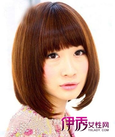 这款粉嫩可人光滑柔顺的齐刘海短发真是圆脸MM的必备之选啊!