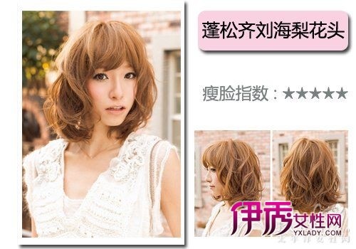 这应该是一款蓬松十足的中长发型,它以增大头发面积来从视觉上拉小脸部的比例,完美地修饰了肉肉的脸蛋,而微卷的刘海看起来非常自然,它所制造出得圆滑弧度,很好地遮盖了宽大的额头。尤其是两侧的波浪内卷,空气感十足,对打造一个小脸起到至关重要的作用。