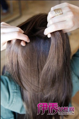 step1:将头发在右侧深侧分,然后将左侧头顶部的头发分成三股。