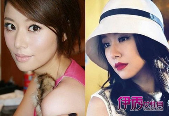 【林心如】 1、首先为大家带来的是林心如淡妆和浓妆的对比图。左图是林心如再在出席活动时的妆容。基本上是全“裸”示人。简单的对眼线进行了描画,然后刷上了睫毛膏,裸色的纯真,稍显苍白的脸容,感觉有点单调,并且整体感觉不够精神。稍微的有点疲态。而右图的妖艳红唇妆,看起来是如此的优雅大方,极具复古气息。卷翘的睫毛,上扬的眼线搭配的是那深棕色的小烟熏妆,唇妆方面使用的是石榴红的唇色,在她的白皙肌肤衬托下更加显眼。