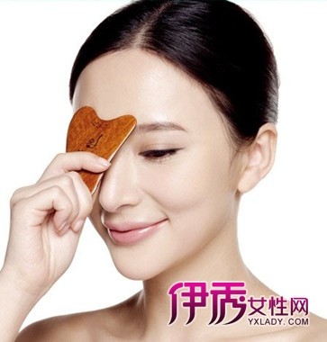 step2:用刮痧板两角间的凹槽部分刮从鼻梁向下刮,不但能使鼻梁变挺还能除胃火哦。