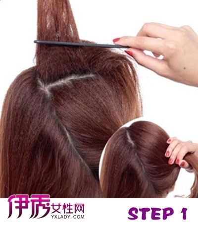 STEP1:首先用用尖尾梳像图上分区,然后倒梳头顶区头发。