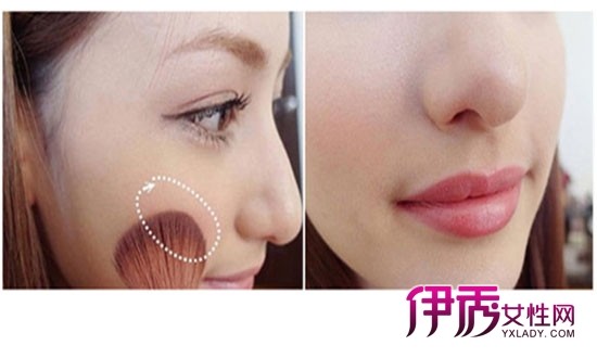 STEP9:蘸取腮红,按图示涂抹在笑肌上