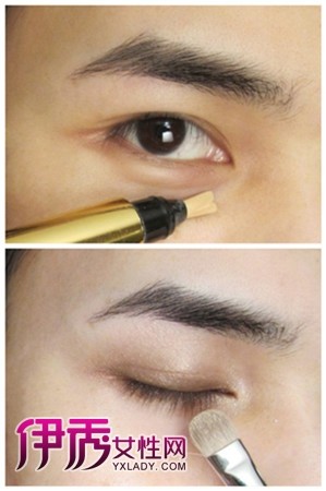 STEP1:先用遮瑕产品将黑眼圈遮盖,提亮眼周