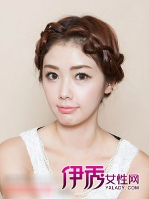 花环式编发今年特别流行,露额造型清爽简单,蓬松的编发如花环般围绕头顶,修饰你的头型。