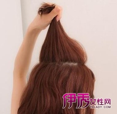 步骤二:将刘海河头顶的头发分出发际线,然后将头顶的一撮头发举起来。