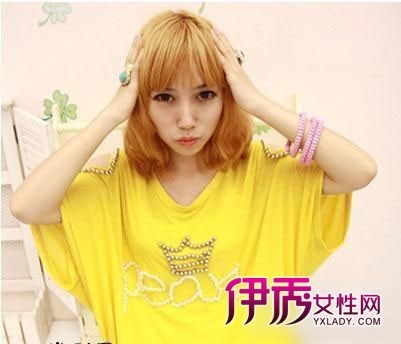 非常抢眼的短款梨花头,金灿灿的染发颜色,使发型更时尚洋气,修薄的齐刘海发帘,加上围着脸颊的质感侧发,收敛脸型,打造精巧可爱的小雅美女形象。