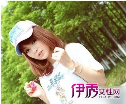 90后学生mm适合的活力直发梨花头,放在脸颊的经典设计,百搭小脸,偏红的深棕色,造型更健康元气,头顶字母鸭舌帽,动感活泼,可爱俏皮。