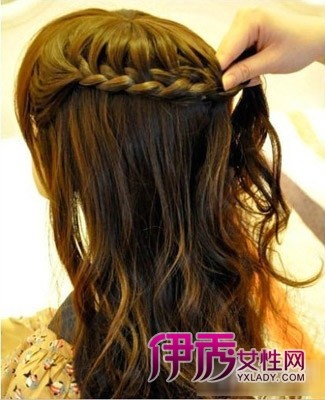 step10:继续按照编好加一束的方法沿着头顶一周编发。