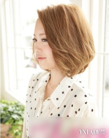 侧分的刘海过后,内扣的烫发效果使修颜的效果更加完美。发尾的规整加上偏厚重感的烫发造型,整体的感觉呈现出减龄又可爱的感觉。飘逸的效果加上发尾的碎发无疑将波波头变得轻盈十足起来。