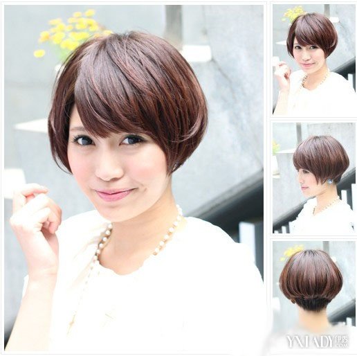 斜分的厚重刘海搭配上内卷的短发造型之后变得更有知性的魅力,显露出更加时尚的感觉哦。